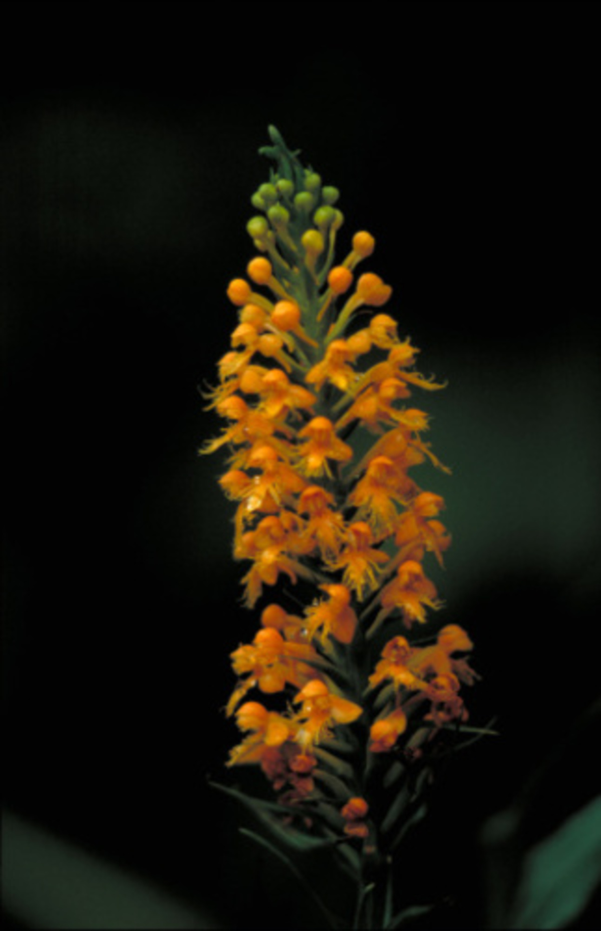 Close view of stem with orange-yellow orchid blossoms. For additional resources about wildflowers visit the National Plants Database http://plants.usda.gov/.