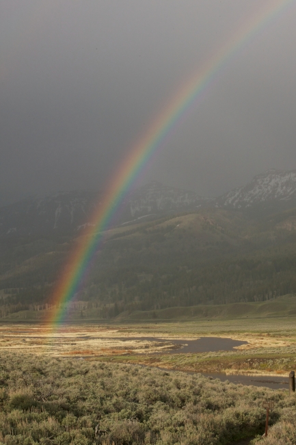 Rainbow after a storm in Lamar Valley, Yellowstone National Park.