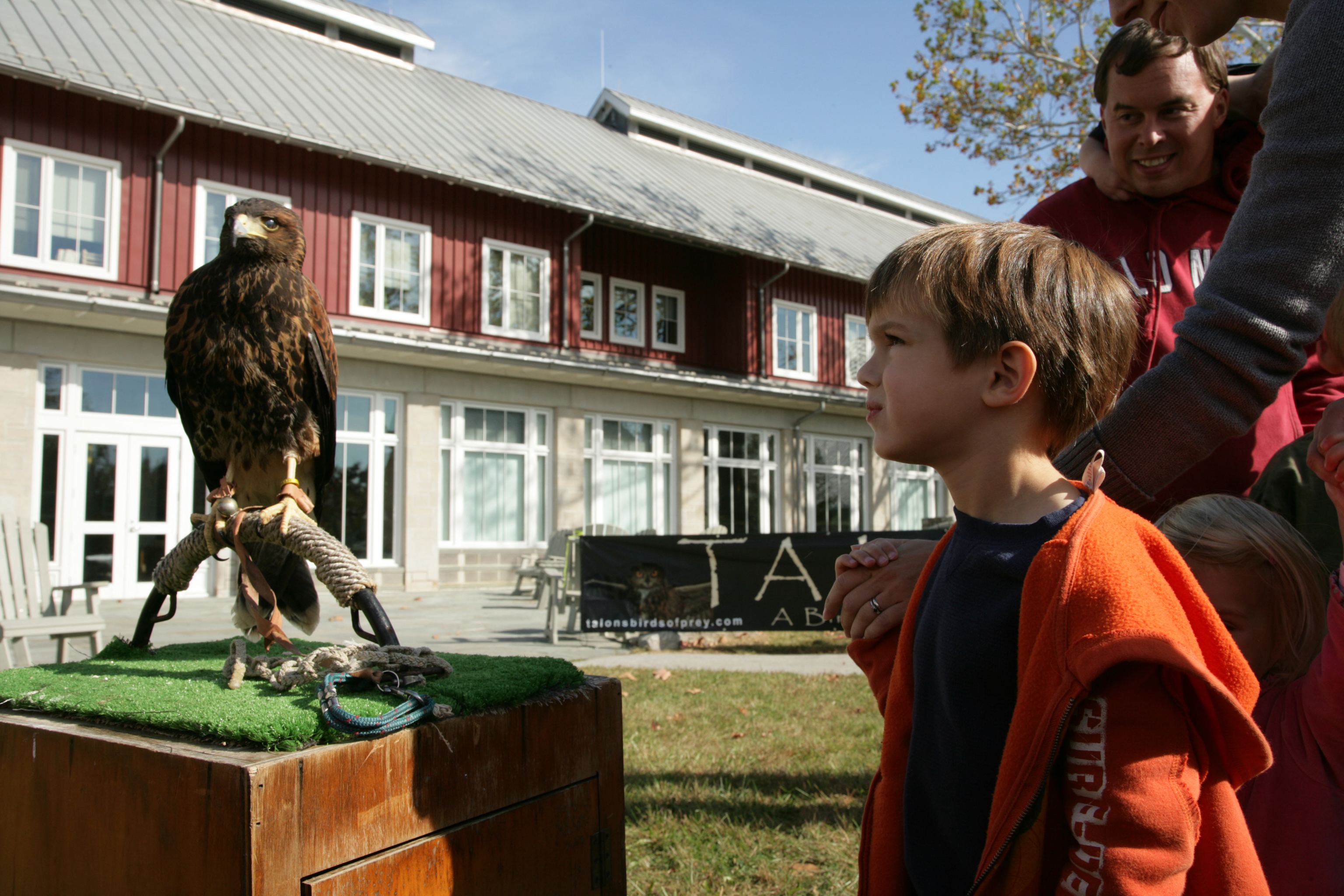 Young boy looks at raptor at the National Conservation Training Center Open House