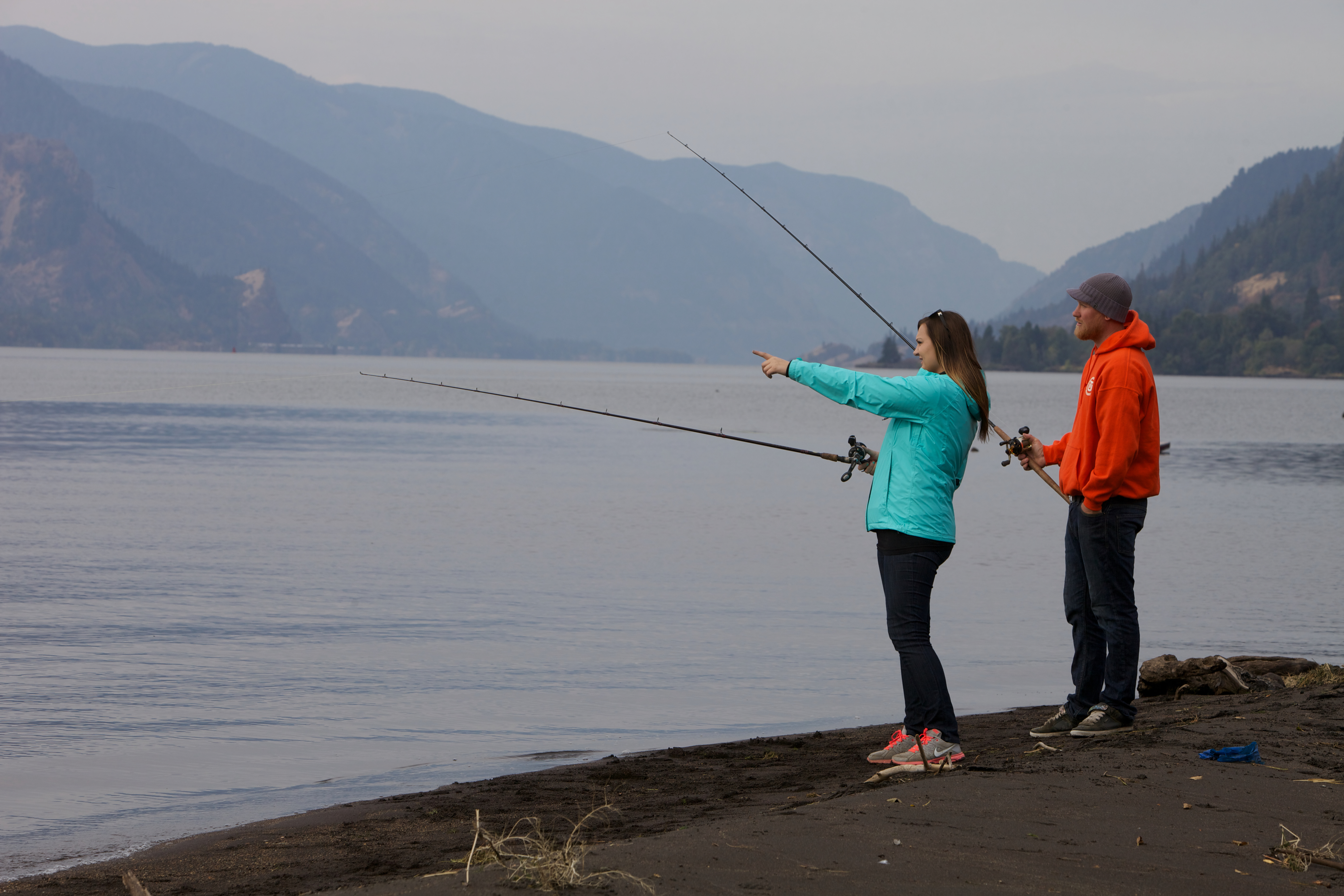 Young couple fishing for Fall Salmon