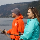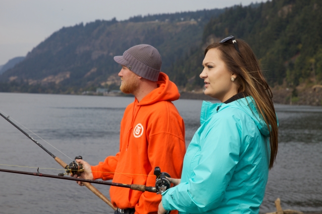 Young couple fishing for Fall Salmon