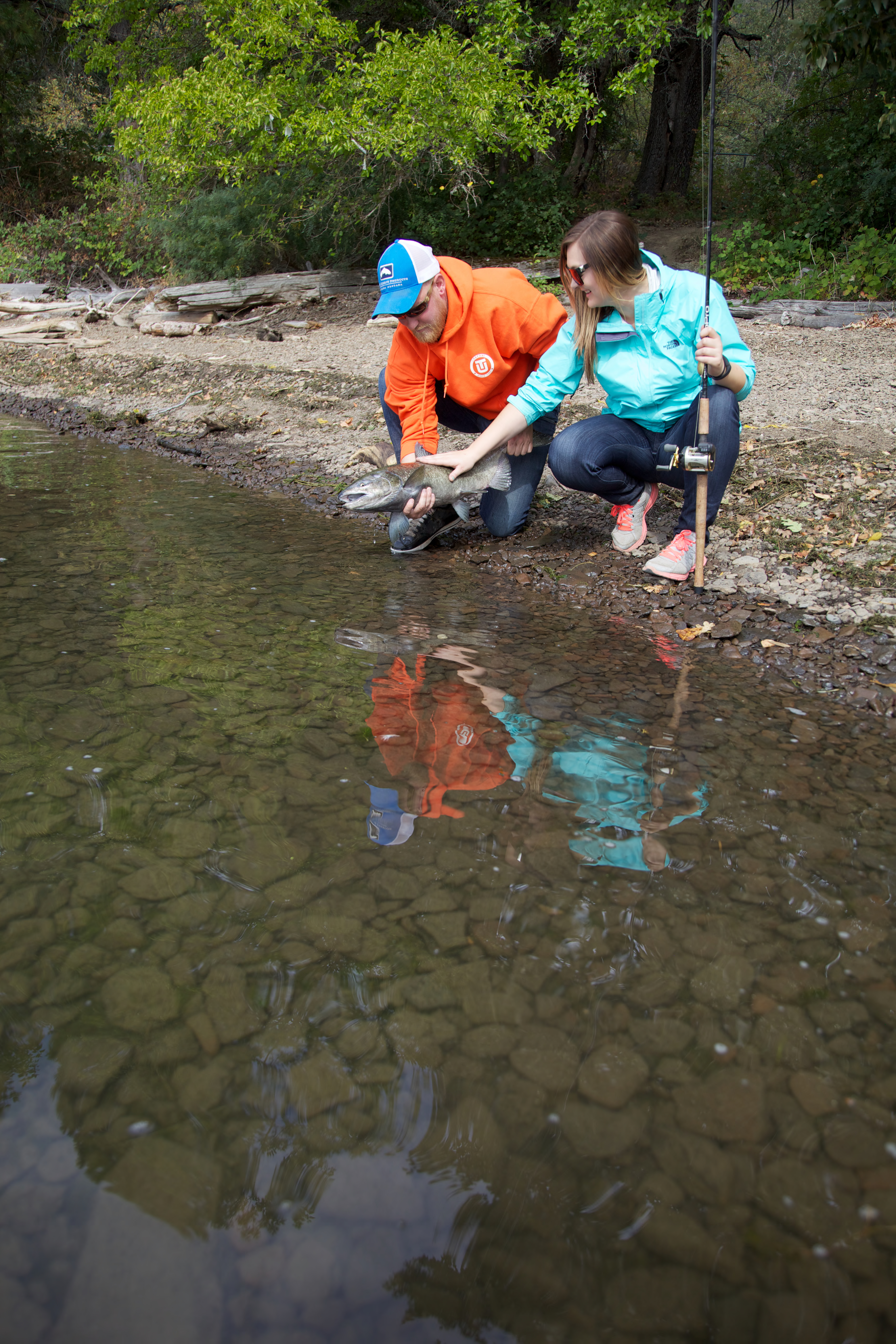 Young couple releases a Fall Salmon