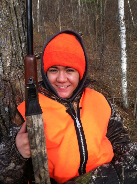 Female youth hunter in treestand.