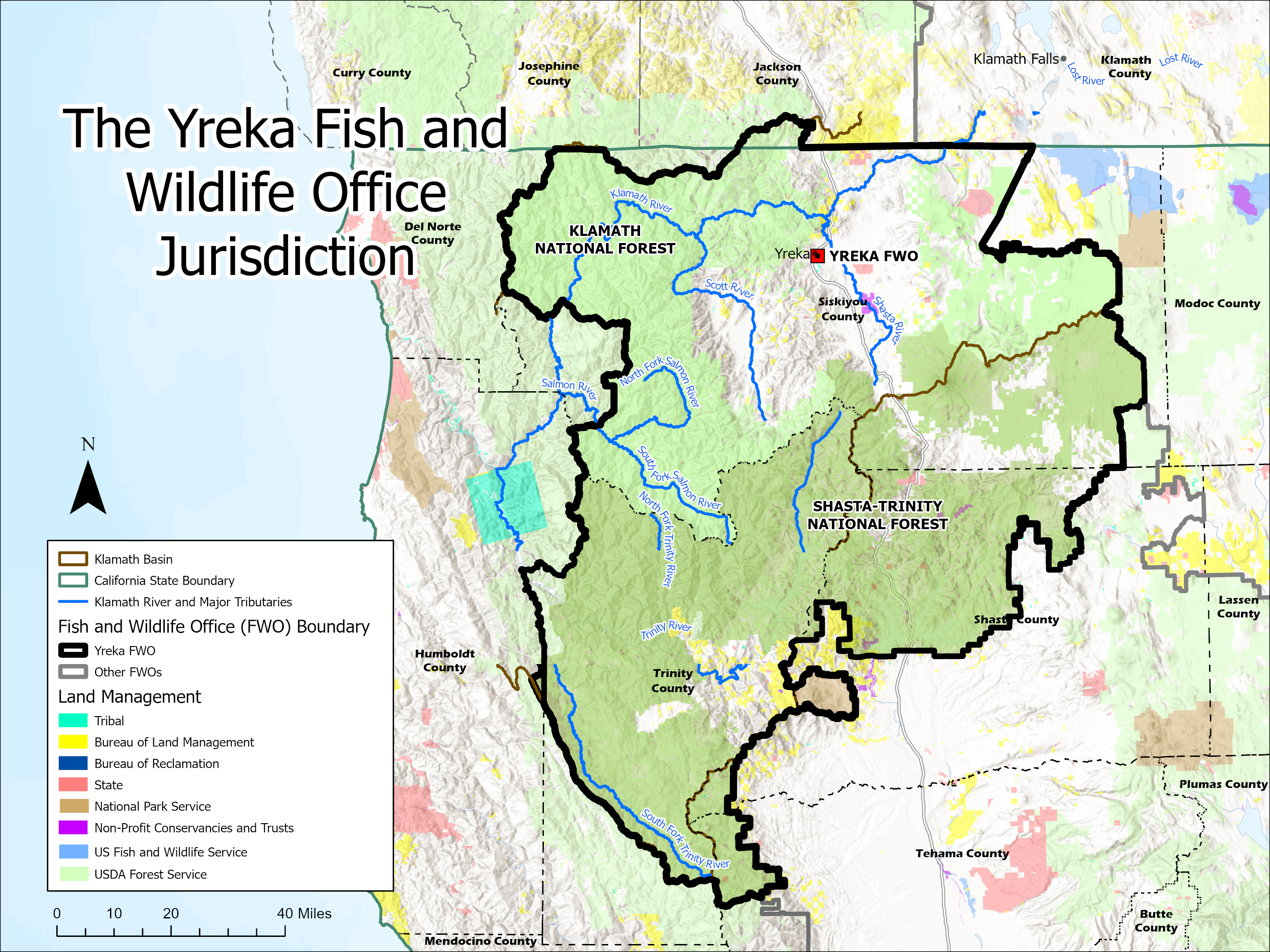 The Yreka FWO jurisdiction covers nearly 6 million acres of forest, riparian, grassland and mountain habitat in northern California.