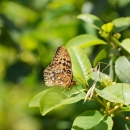 Zerene Fritillary (Speyeria zerene) resting on a leaf.