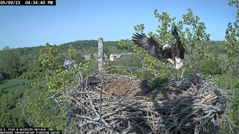 The NCTC Eagle Cam offers us a unique perspective: a ‘sneak peek” into the living room of an apex predator during a crucial time in its life cycle. Although this nesting season may not continue as expected and action in the nest may decline, we plan to keep the Eagle Cam up and running until mid-June or early July keeping an eye out for the adults who occasionally return to the nest.