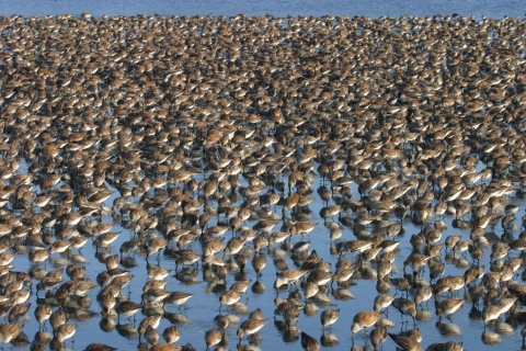 Alaska has more than 50 shorebird migration staging or stopover sites that qualify as Western Hemisphere or East Asian-Australasian Shorebird Reserve Network sites. At 10 of these sites, concentrations exceed 1 million birds, with sites like the Copper River Delta hosting between five and eight million shorebirds each spring, the world’s largest aggregations of shorebirds are thought to occur on the Copper River Delta. While the Yukon-Kuskokwim Delta supports an estimated 7 million shorebirds, including the majority of six North American populations, including Pacific Golden-Plovers, Black Turnstones, Western Sandpipers, Dunlin, Bar-tailed Godwit, and the western population of a Whimbrel subspecies.