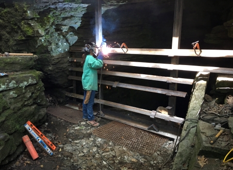 The Arkansas Ecological Services Field Office and Arkansas State Parks partnered to build 11 gates at Devil’s Den State Park on crevices that act as hibernacula for Ozark big-eared bats, Indiana bats, tri-colored bats and big brown bats. Prior to gating the colonies experienced extensive human disturbance of hibernating bats. The first-year post gating, Ozark big-eared bat use of gated...