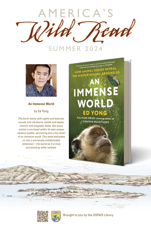 Ever wondered what life is like from wildlife’s point of view? Join the USFWS Library for this Summer's Wild Read to find out. In An Immense World, Pulitzer prize-winning science journalist, Ed Yong, takes us on a thrilling adventure full of curiosity, science, and beautiful prose that broadens the senses and reveals how animals take in the world around them.