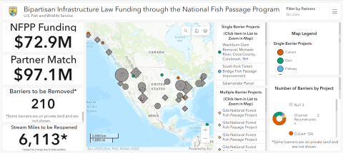 Fish passage is the ability of fish or other aquatic species to move freely throughout their life to find food, reproduce, and complete their natural migration cycles. Millions of barriers to fish passage across the country are fragmenting habitat and leading to species declines. The U.S. Fish and Wildlife Service's National Fish Passage Program is working to reconnect watersheds to benefit both wildlife and people.
