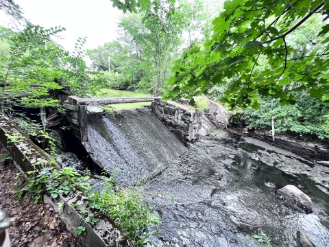 Learn more about fish passage on the Town River in the Taunton River watershed of southeast Massachusetts, blocking otherwise open passage to Narragansett Bay and the ocean. The dam was an aging and obsolete structure that posed a risk to public safety. This project removed the High Street Dam and restored the river banks. Removal of the dam reconnects 10 miles of river for the benefit of alewife, blueback herring, American eel, sea lamprey, and American shad, and opens access to 354 acres of spawning habitat for river herring at Lake Nippenicket.