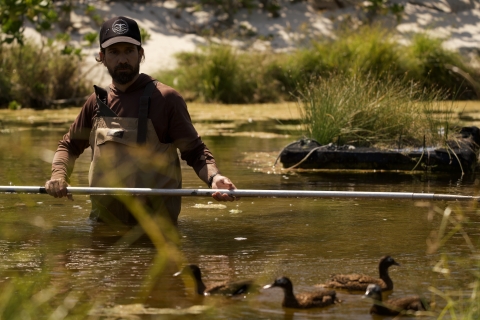 The Midway Seabird Protection Project kicked off at the end of January 2023, when the Laysan duck team arrived at Midway to start Phase 1. The Laysan duck team has had great success capturing the ducks on Sand Island and moving them to Eastern Island. Between late January and early April 2023, the team captured and moved 968 Laysan ducks to Eastern Island. At Eastern Island, the Laysan ducks have everything they need in their temporary home.