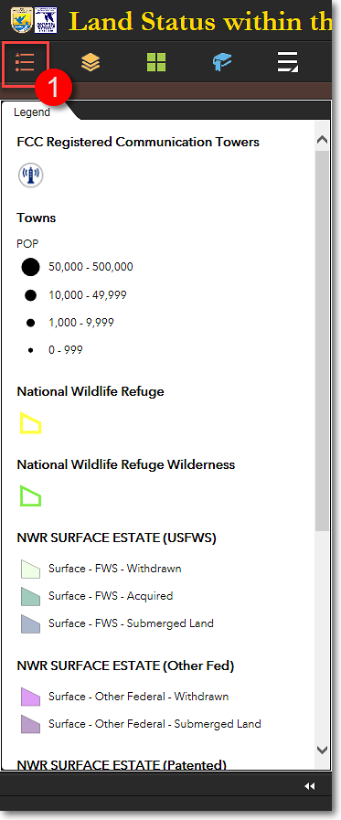 The Legend tool displays the legends for the various data layers in the Land Mapper.