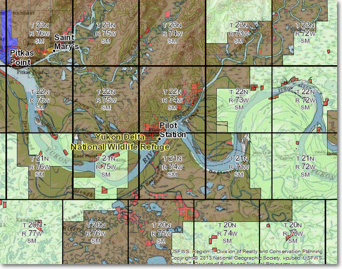 The Region 7 Land Mapper was developed, and is maintained by, the U.S. Fish & Wildlife Service, Region 7, Division of Realty. Questions, comments,and suggestions should be directed to ak_realty@fws.gov