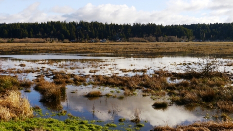 Established in 1983, Bandon Marsh Refuge is located along the picturesque southern Oregon coast near the mouth of the Coquille River and the city of Bandon. Its invertebrate-laden mudflats fuel the migration of tens of thousands of shorebirds every spring and fall, making it an essential stopover site. Young salmon and trout find sanctuary in the estuary's steep-banked tidal channels and anchored driftwood. The refuge consists of Bandon Marsh, Ni-les'tun Marsh, and the Myrtlewood Grove Nature Trail.