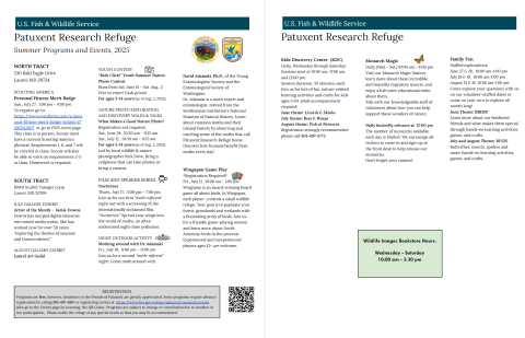 Programs are free. Some programs require advance registration by calling 301-497-5887. Programs are subject to changes or cancellation due to weather or low participation. Please notify the refuge of any special needs so that you may be accommodated. Join our email list by contacting michael_cangelosi@fws.gov