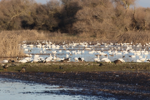 The refuge is a major wintering ground and migratory stopover point for large concentrations of waterfowl, shorebirds, and other waterbirds. From autumn through spring, the wetlands on the refuge come alive as large numbers of migrating waterfowl, shorebirds, and wading birds arrive in the San Joaquin Valley. Here, the wetlands provide plentiful food and shelter, and a critical wintering area along the Pacific Flyway migration route. The wetlands also support a wide variety of other animals, including mammals, amphibians, reptiles, and insects. Waterfowl generally remain until late March before beginning their journey back north to breeding areas; however, some mallard, gadwall, and cinnamon teal remain in the area to nest and raise young.
