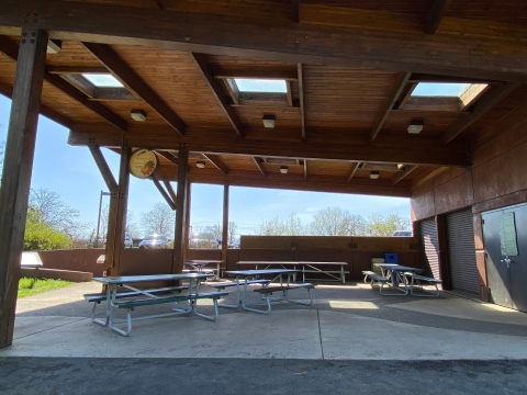 The Education Shelter hosts school field trips and interpretive programs. The tables are available on a first-come basis for general use when they are not being used for programs.