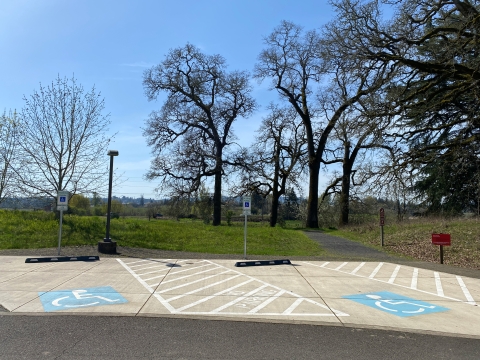 The lower parking lot has 22 standard parking spaces and no dedicated accessible spaces. This lot is typically used for overflow parking and is not directly connected to a trailhead.