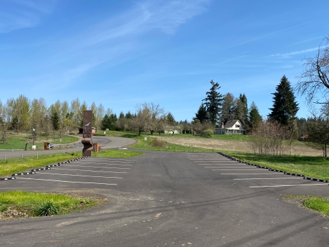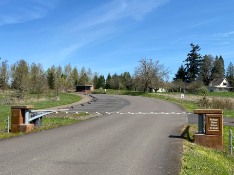 The driveway to the upper parking lot has 16 standard parking spots and no designated accessible spots. The gate is open from dawn to dusk. If you are trying to exit the refuge at dusk and the gate is closed, approach it slowly and it will automatically open.