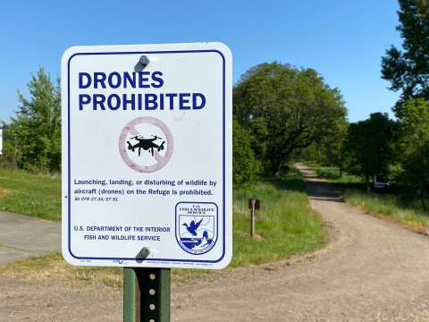 Drone operation is prohibited throughout the refuge to reduce disturbance to wildlife. This prohibition includes launching, landing, and overhead flight.