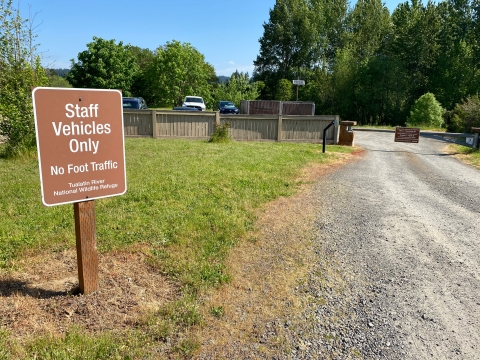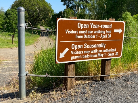 Look for this sign, marking the entrance to the refuge from Highway 99 (Pacific Highway). If you are coming from the South, be aware that you have to drive past the entrance and perform a U-turn at a designated spot just to the North of the entrance.