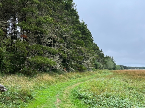 The trail has views of seasonal wetlands, open fields and young coastal forests, and coastal prairie restoration areas. Raptors, sparrows, waterfowl and the occasional elk, deer and black bear can be viewed from here. Barn, tree and violet green swallows are abundant in the summer. Access is by foot only.