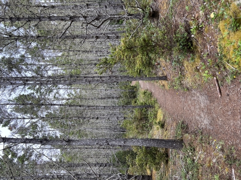 Trailhead Location: 1.6 mi north of the refuge headquarters office on State Route 101. Parking is available on the south side of the road in a pullout in front of a gate. Please do not block gate access. The trail follows the old road behind the gate for ~300 ft where a small sign directs you to the east traveling trail.