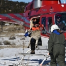 A sedated wolf is brought in for processing via helicopter in New Mexico.