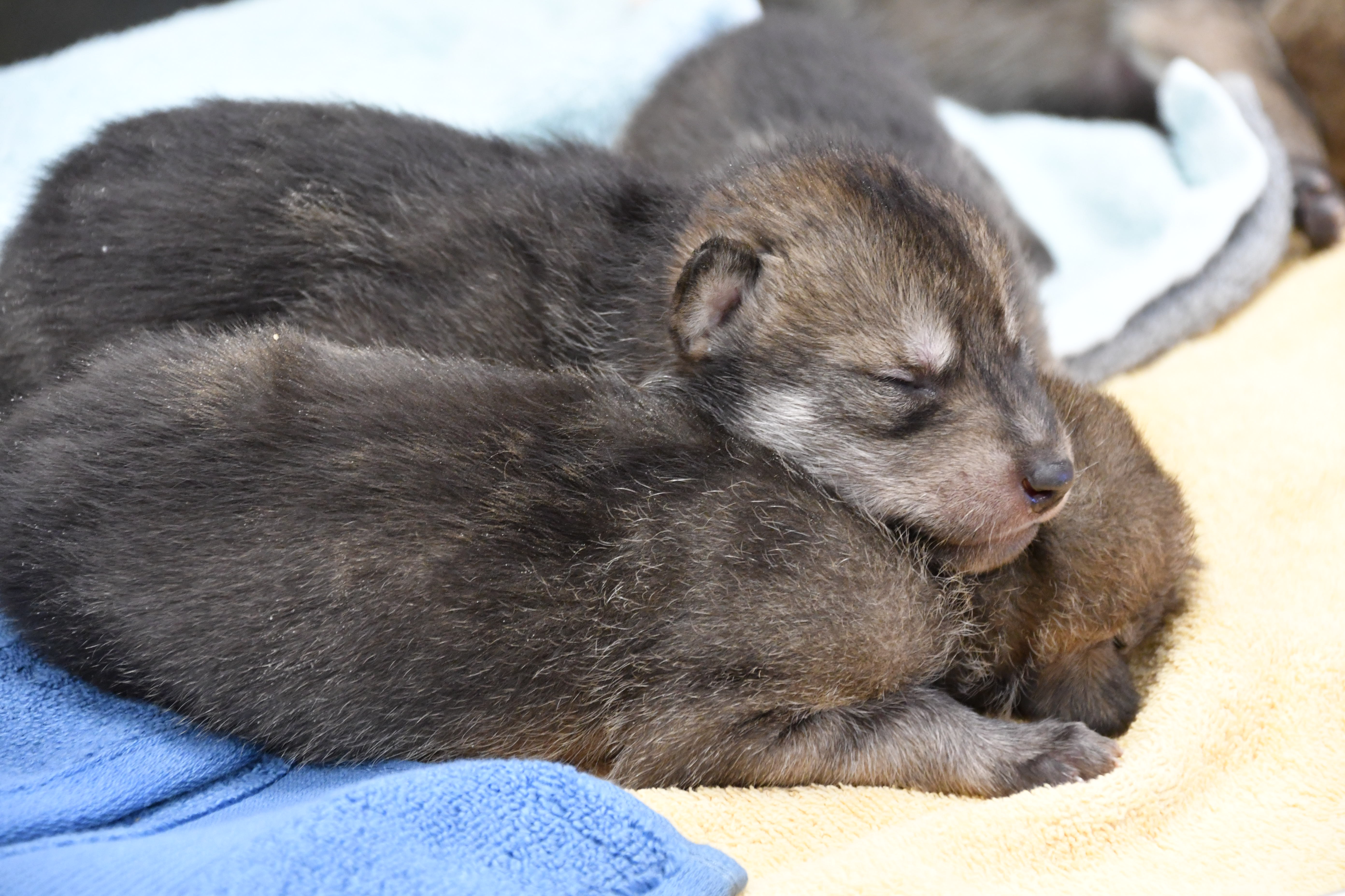 Two Mexican wolf pups from the Wolf Conservation Center in South Salem, New York, were given health checks before being fostered into a wild den in New Mexico as part of Mexican wolf recovery efforts.