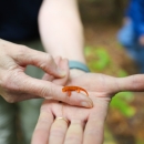 Juvenile Eastern Newt (Notophthalmus viridescens), also known as an eft. Juveniles are bright orange-red with black spots on their back and are found on moist forest floors, just as the forest was on our visit to Beech Hill.
