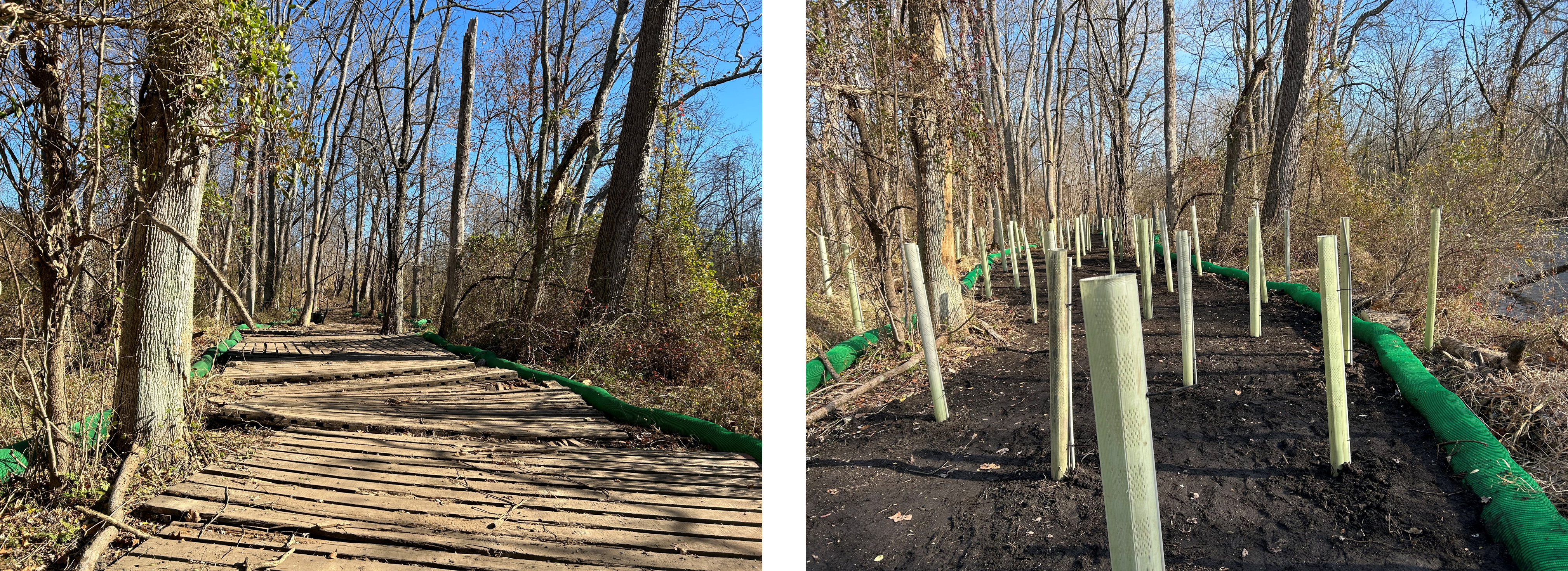 EHS Support designed a path for heavy machinery to access the dam with the least amount of disturbance and created a plan for restoring the path afterwards with shrubs, trees, and mulch.