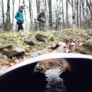 Heather Hanson and Jess Straub cross over fish-friendly culvert in Alaska's Mat-Su Valley.