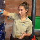 Amanda George, a Lahontan National Fish Hatchery fish biologist, feeds Lahontan cutthroat trout fry at the hatchery’s aquatic habitat. Credit: Dan Hottle/USFWS