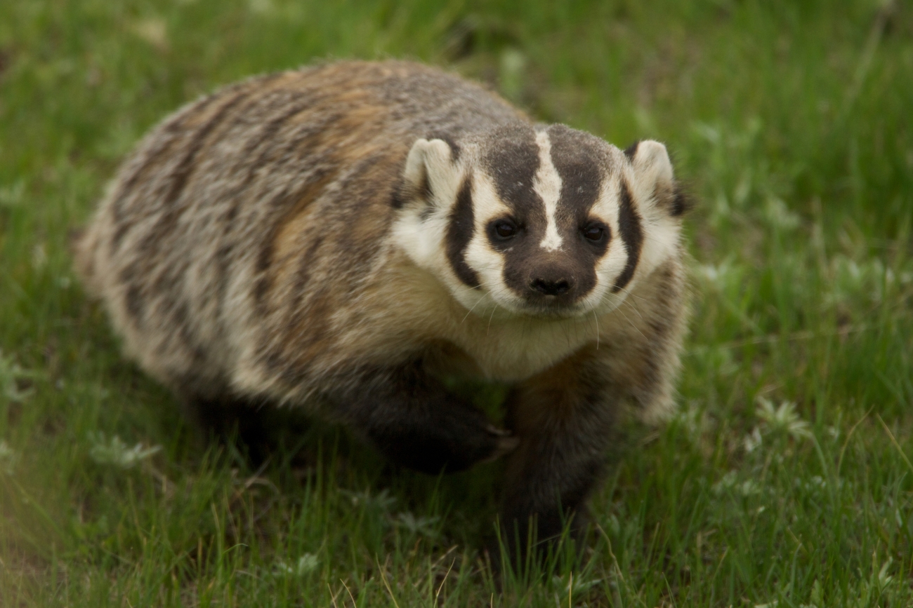 The American badger is at home in grasslands and woodlands providing there is enough of its favored prey. Its mostly nocturnal habits seldom bring it into contact with people, but signs a badger is in the area such as tracks and holes can be found. Although they normally attack at night when their victims are asleep, badgers are fast diggers and can pursue their quarry (mice, chipmunks, squirrels, rabbits, etc.) into holes.