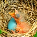 This American robin chick at Seedskadee National Wildlife Refuge in Wyoming is altricial. Altricial birds hatch semi-naked or naked – with few feathers or no feathers. They usually are blind. They hatch pretty much helpless. They depend on the parents for food for a period of time.