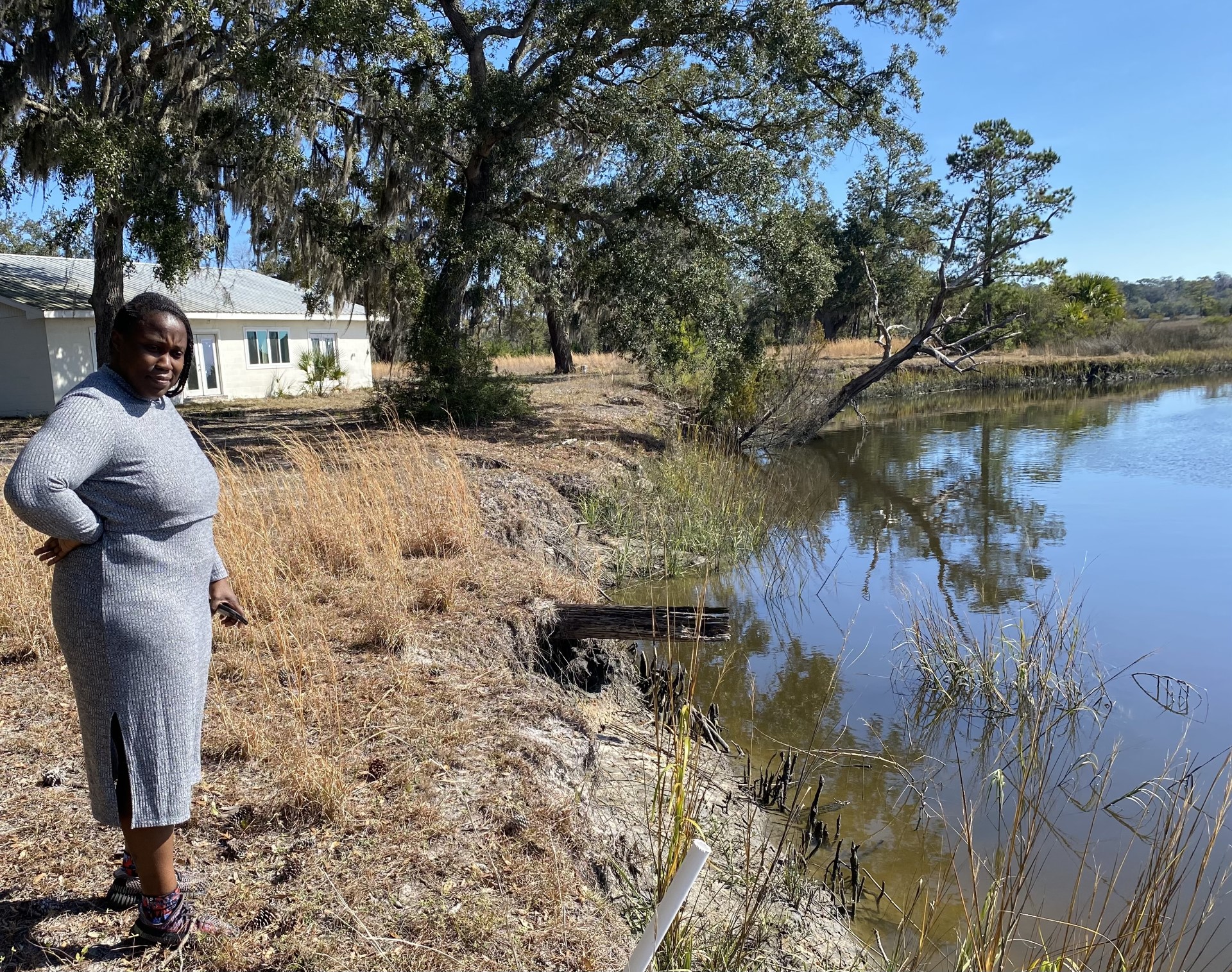 Aminata Traore looks over the salt marsh and eroding bluff edging closer to the community center at Martha Randolph Stevens Park.