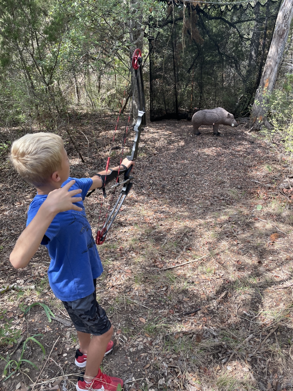 5th grade student shooting a boar at the 3D archery course at Inks Dam NFH.