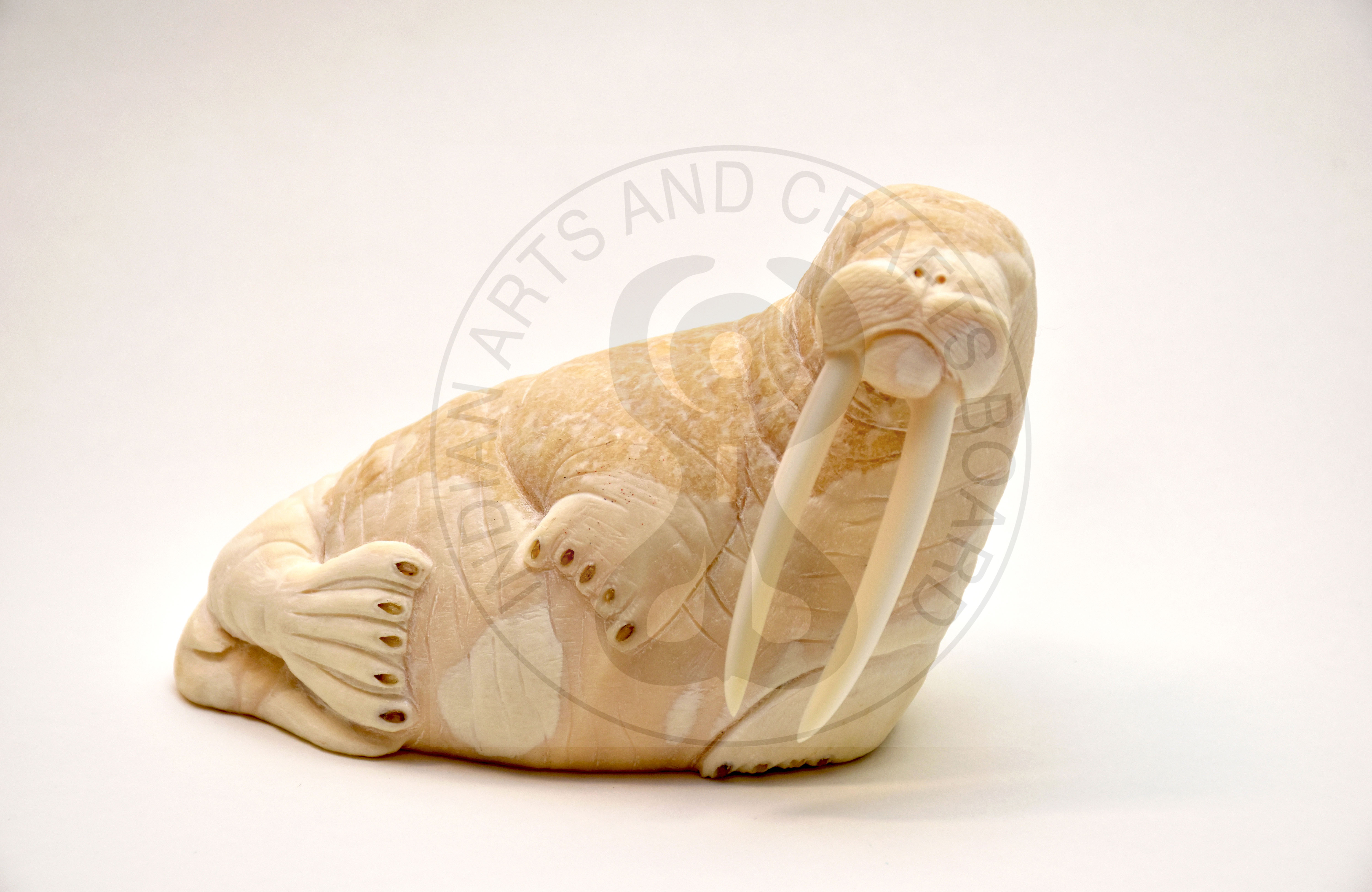 "Ayveq (Walrus)," ivory, © 2019, Ben Pungowiyi. Photo courtesy of the Indian Arts and Crafts Board