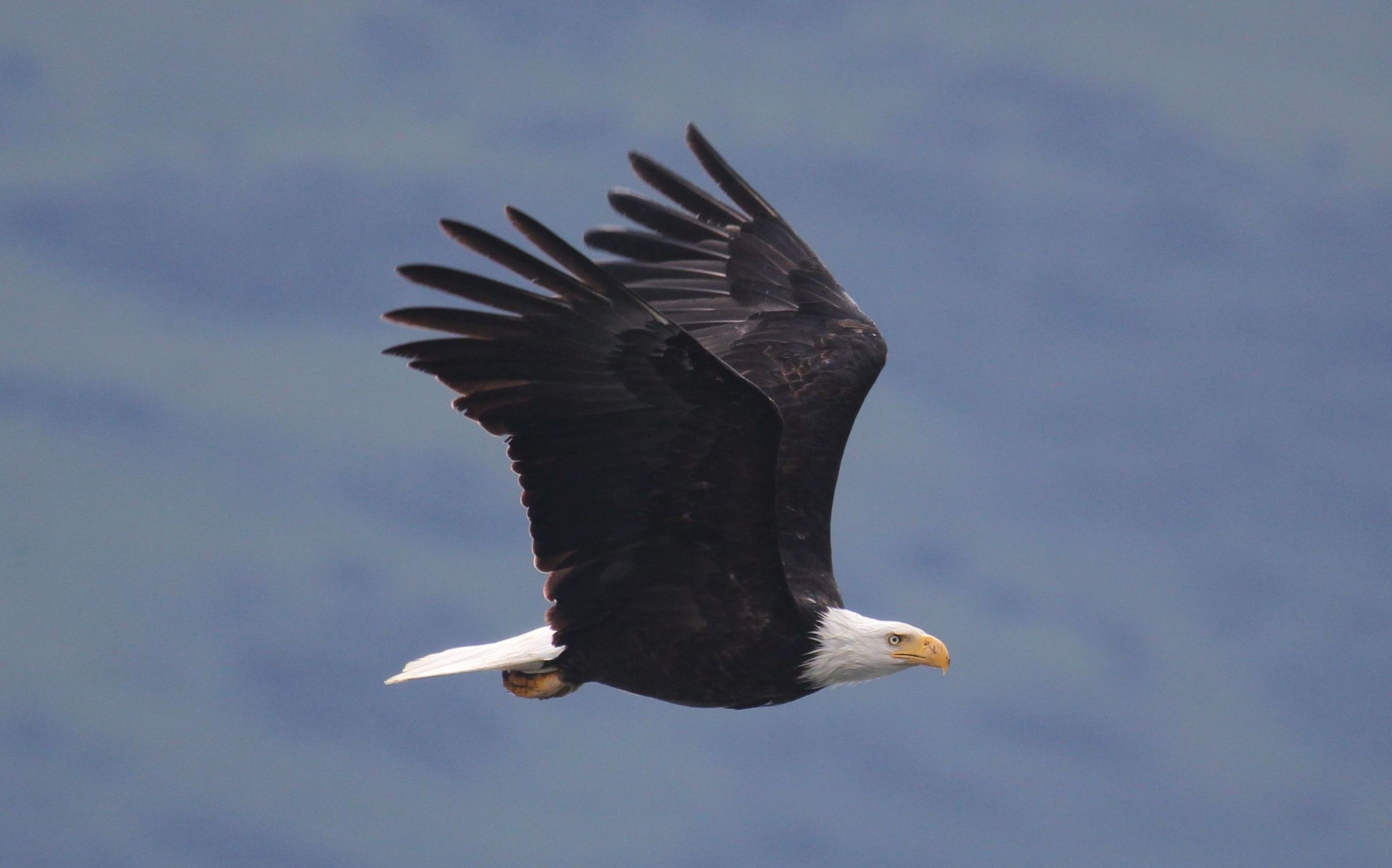 A bald eagle over Kodiak National Wildlife Refuge in Alaska.