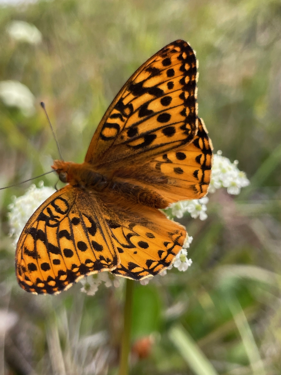 A Behren's silverspot butterfly (Speyeria zerene hippolyta) adult after to release into the wild.