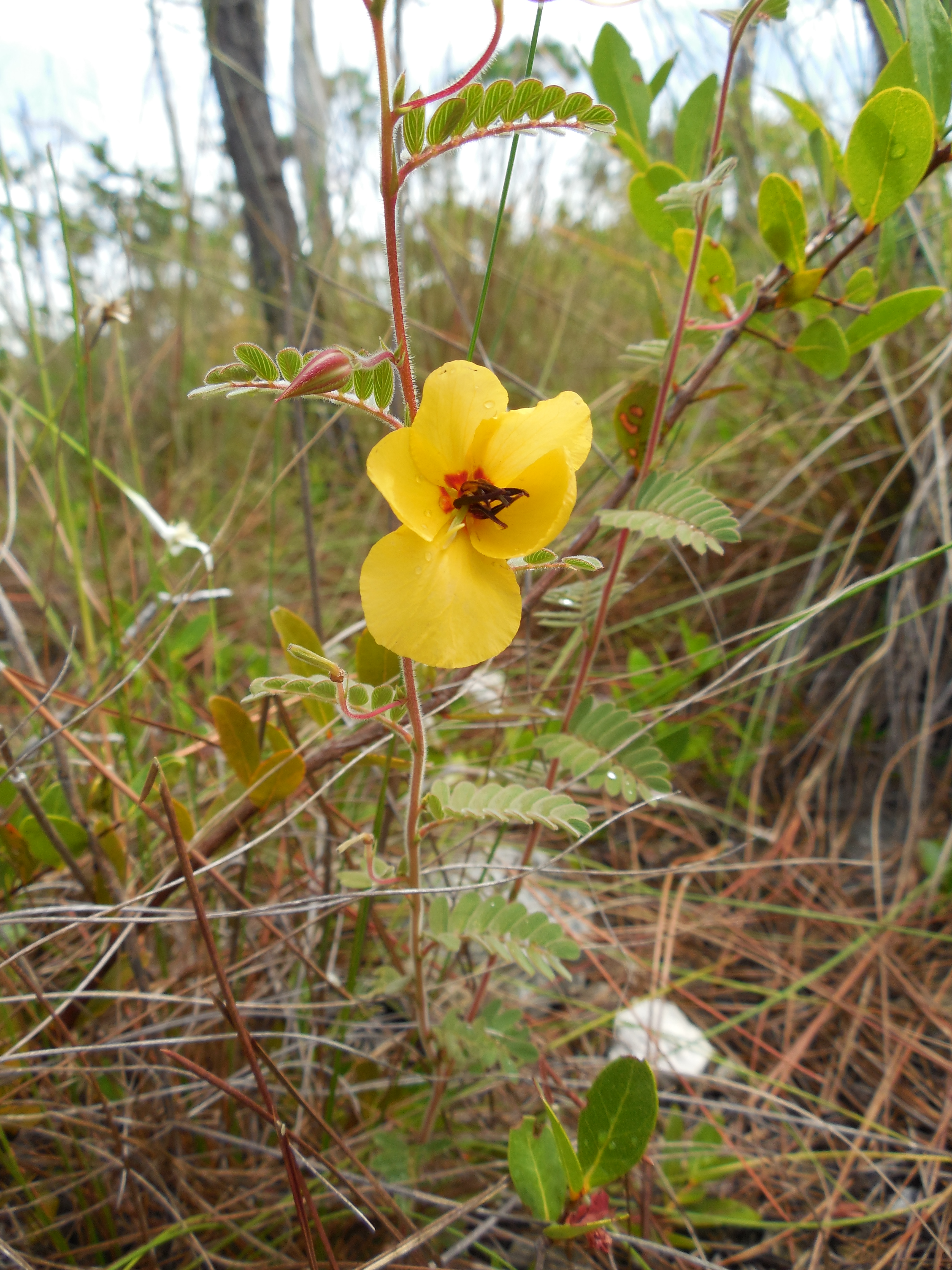 Big Pine partridge pea (Chameacrista lineata var. keyensis) is a Florida native shrub. The flowers have five buttercup-like petals, with reddish-brown stamen. It can grow to about 30 inches tall and has compound leaves. It is only found in Cudjoe Kay and Big Pine Key, which is the site of the Key Deer National Wildlife Refuge. Without the protections the refuge provides, this plant might not exist, today.