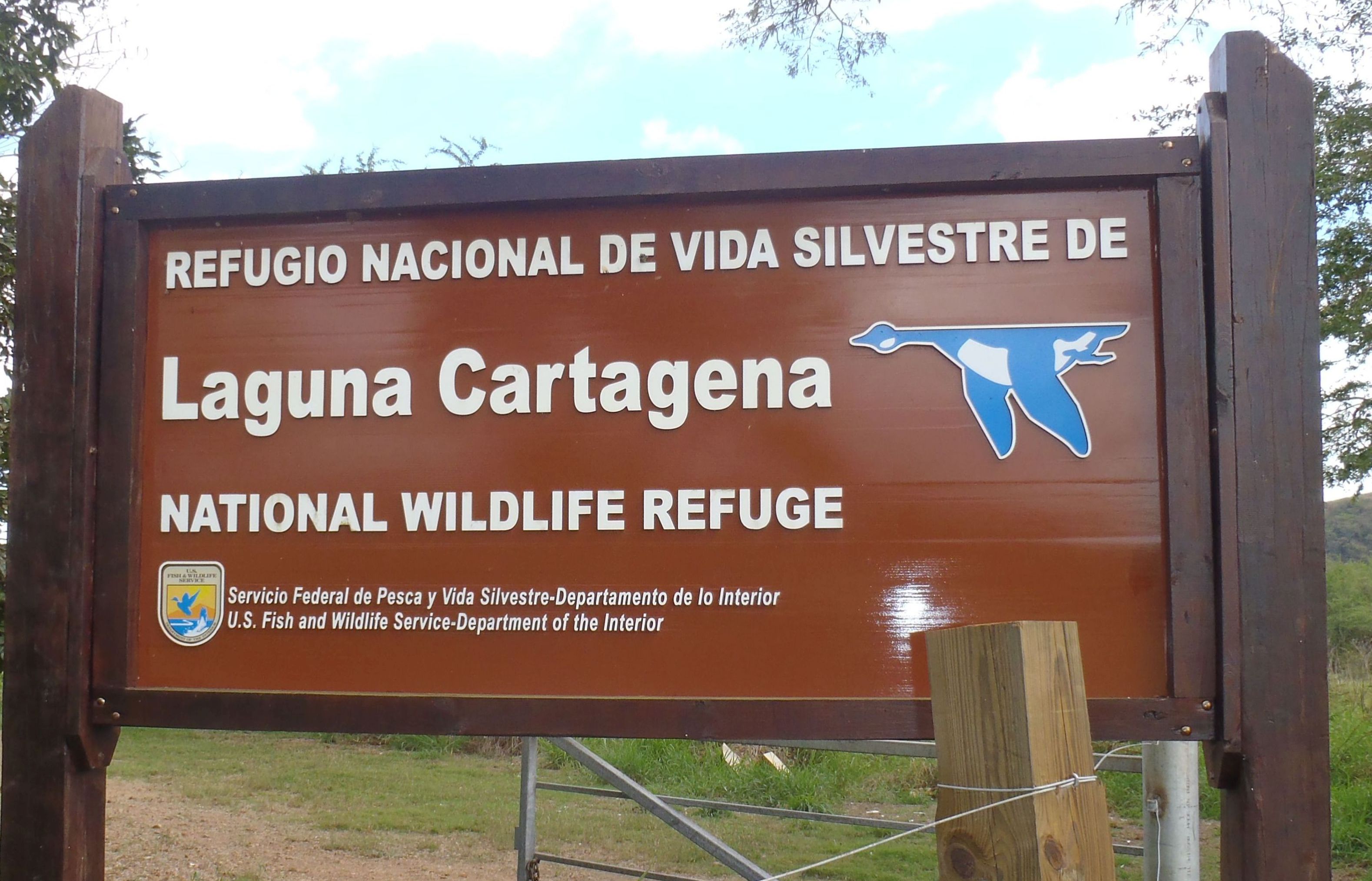 Bilingual entrance sign at Puerto Rico's Laguna Cartagena National Wildlife Refuge