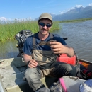 Technician Evan Buck holding a green-winged teal that was captured in a swim-in trap in Alaska as part of the 2023 Waterfowl Banding Operations.