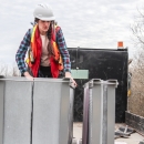 Biologist Holland Youngman examines artificial bat roost prior to installation