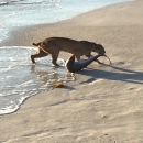 Bobcat drags small shark from beach shore. Credit: USFWS