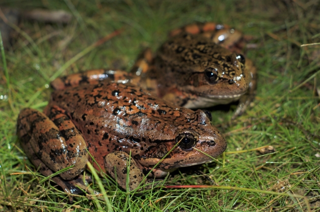 Two California red-legged frogs photographed at Big Gun Conservation Bank in northern California