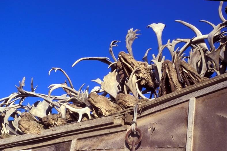 Caribou antlers on a home in Kotzebue, April 2008. USFWS.