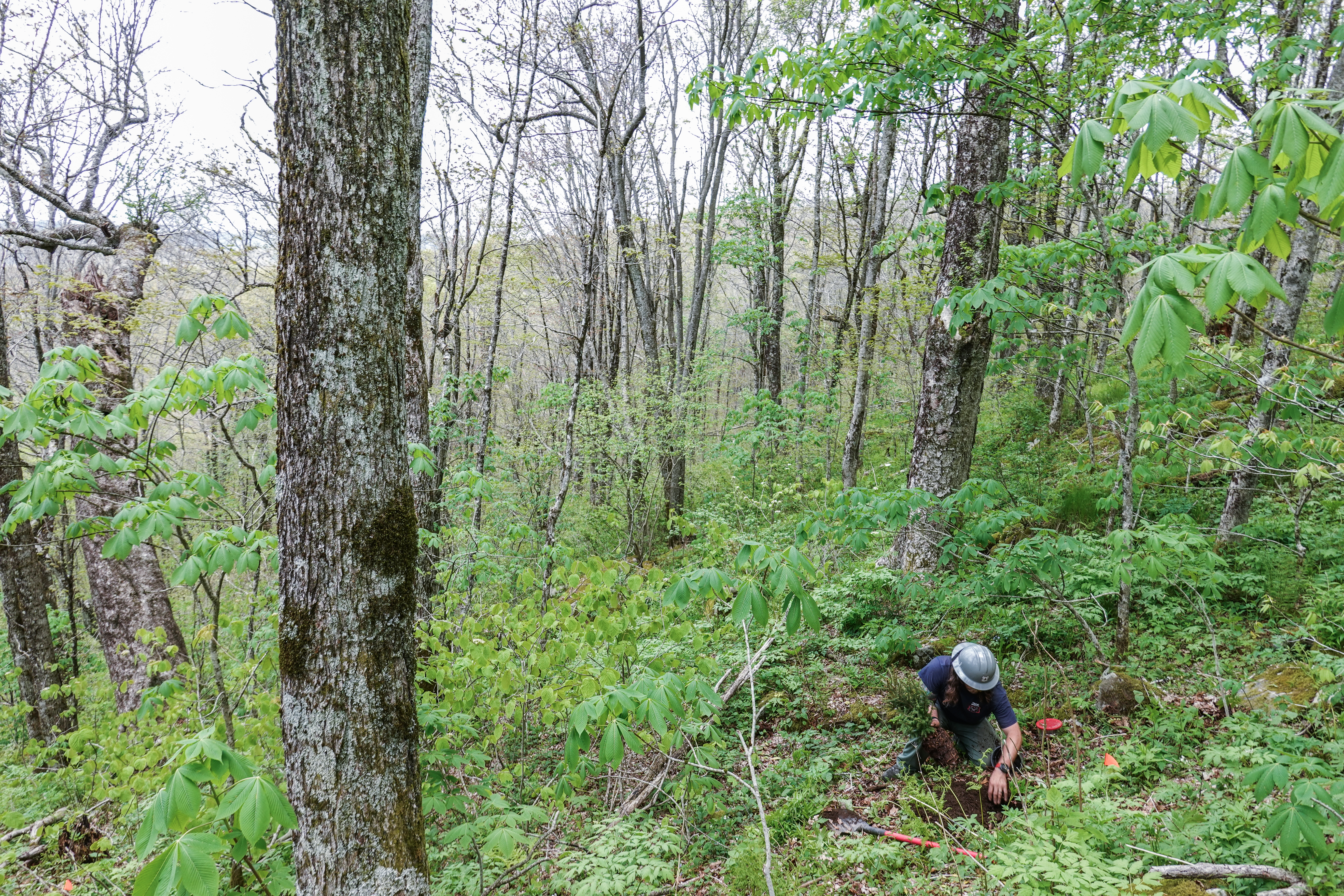 Christian Bartow plants a red spruce on Cherokee National Forest