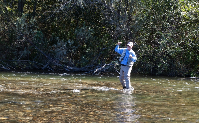 Creighton Smith of Redding tries to pull a steelhead out of Clear Creek in October. Wild steelhead must be released unharmed when caught in California.